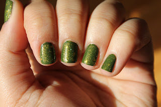 Hello, there! It's Wednesday, which I think is the weirdest day.. I probably should be doing my summer course work, but hey.. I've been doing layering experiments instead! Which is clearly a better use of my time anyway. So. I got a few Candeo Colors minis and at first, I was disappointed with how sheer they were, especially Poison Frog. But then I remembered Zoya's Shawn, which I haven't worn in WAY too long. So I put on 2 coats of Shawn, 2 of Poison Frog and I am so glad I got PF now. Just look at this shimmer: